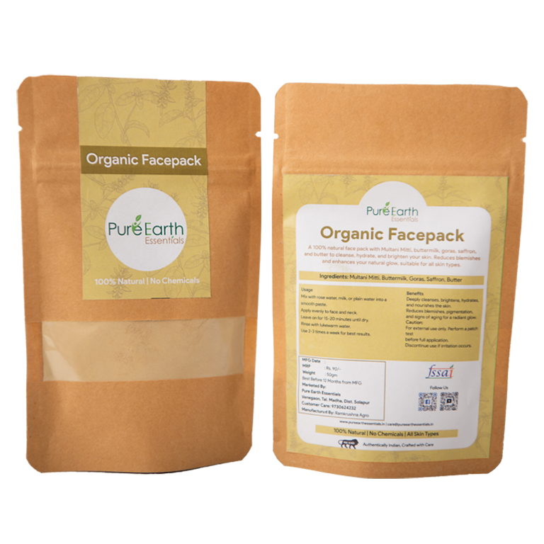 Pamper your skin with Pure Earth Essentials Organic Face Pack and enjoy the purity of nature in every application. Available in 50g and 100g packs for your convenience!